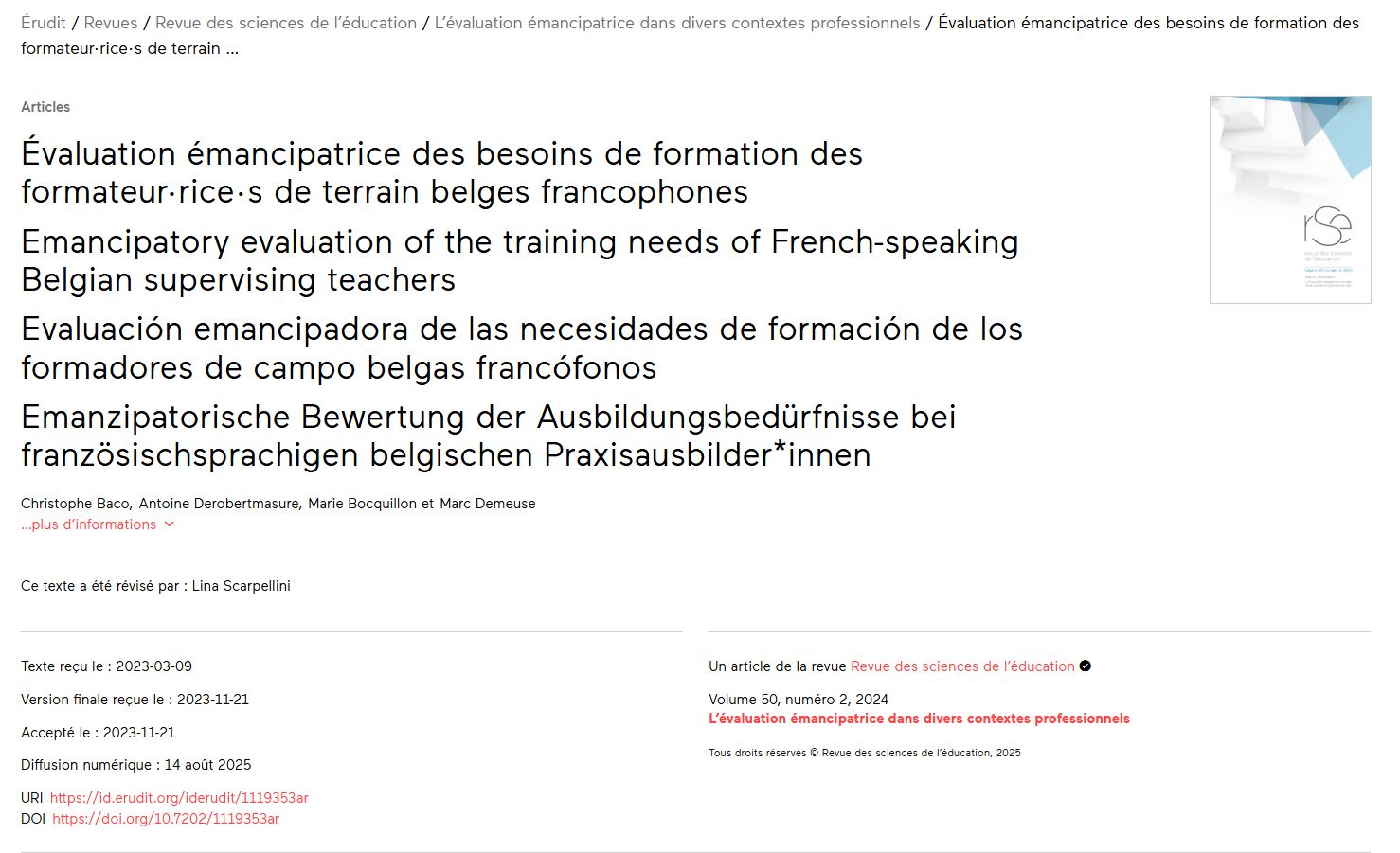 Nous avons le plaisir de vous partager un nouvel article : Évaluation émancipatrice des besoins de formation des formateur·rice·s de terrain belges francophones